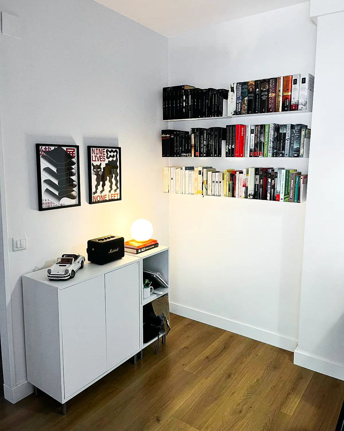 "Estava buscant unes prestatgeries per a llibres que fossin discretes. Vaig trobar a Kion Home just el que necessitava, a més fabricat a Espanya. Vaig comprar un joc de 6 prestatges per a llibres i queden perfectes a la paret. Ocupen poc espai i els protagonistes són els llibres.